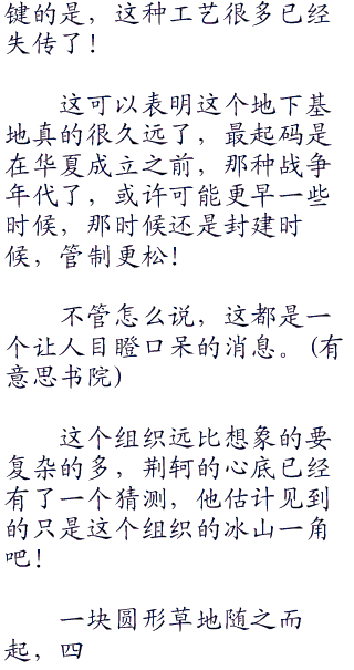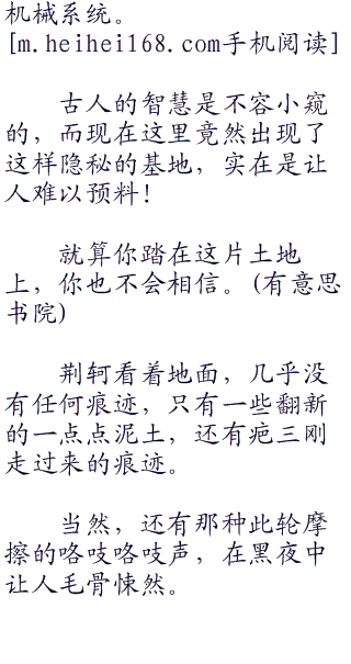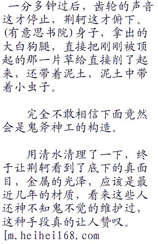 荆轲这下子真的有点惊讶了,齿轮的工艺代表这个秘密基地一定很大很隐秘,最关