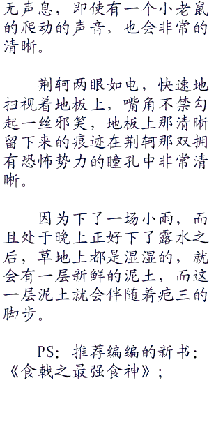 荆轲淡定的远远吊着,这速度对于他来说,简直就是小菜一碟,非常容易。