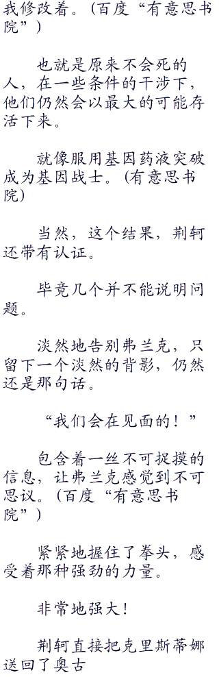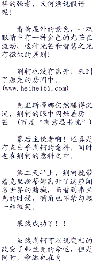 “你也不错!我会再来的!”荆轲淡淡一笑,虽然仍然让人感觉到寒意,却是好了许多。