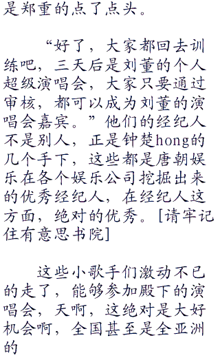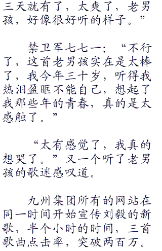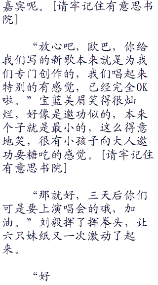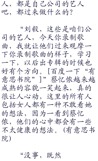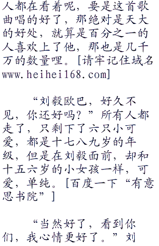 最后一首歌曲也录制结束了,刘毅走出了录音棚,这时才发现,录音棚外已经站了很多人,这些人男的帅气女的艳丽,一看就知道是公司的明星。其中还有六只小美眉,刘毅很熟悉。