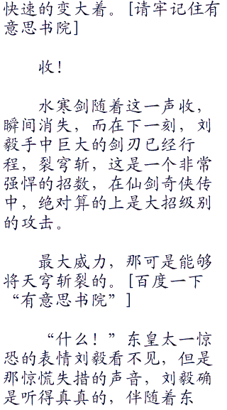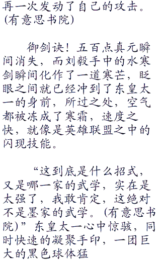 刘毅刚坐到小月的身边,手中便出现了一把冒着寒冰刺骨的水寒剑,在小月诧异的目光中,水寒剑飞速爆射而出。