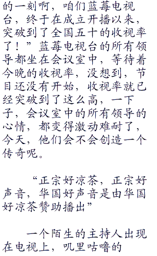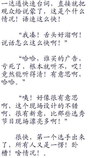 殿下我的最爱:“不看相貌,不看身材,不限年龄,只要你有一个想唱歌的心,就可以来到这个舞台,哈哈,这还是第一次呢。”