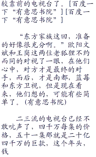 直接加了一千万,这部电视剧已经需要花十亿两千万才能够拿下了,而这十亿两千万,正好是这家电视台所有的资金。