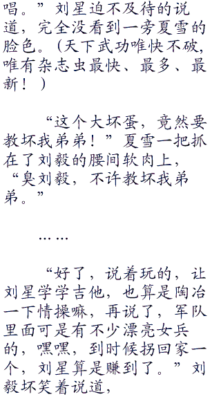 “刘星,你怎么能够跟我抢刘毅哥哥,刘毅哥哥你在教我几首钢琴曲吧,一首小星星是不是不够啊。”夏雨撅着小zui说道。