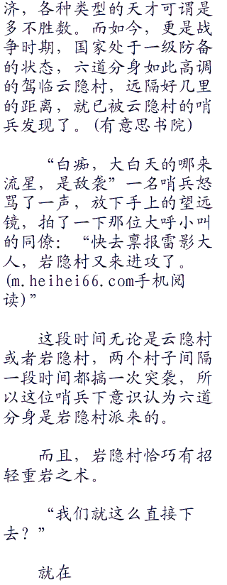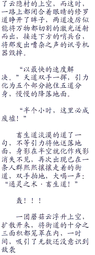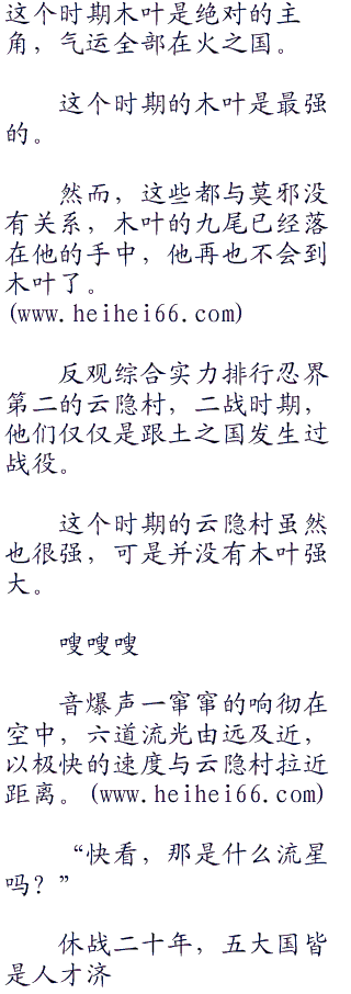 这一趟赶程莫邪没有使用神威,而是选择了飞行,经过神威那令人天旋地转的时空穿梭之后,他对这个忍术感到无爱了,那种影响头脑冷静的忍术,果然不适合他。