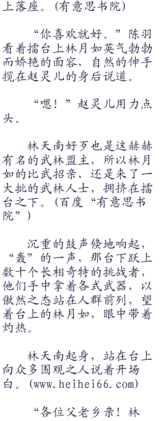 比武招亲就在当天上午,擂台就建在林家堡的府门口,大旗招展,五彩缤纷。