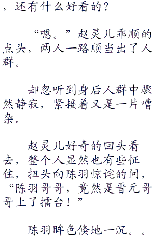 “陈羽哥哥,这里好热闹啊!”赵灵儿和陈羽混在人群中。