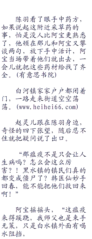 “这些日子这附近莫名就发了瘟疫,我这儿的药材都用完了,如果你们想熬药,还是得自己去把这些药材采集,再交给我的徒弟阿宝,他就会帮你们按照配方煎药。”