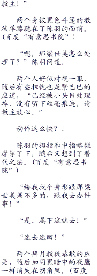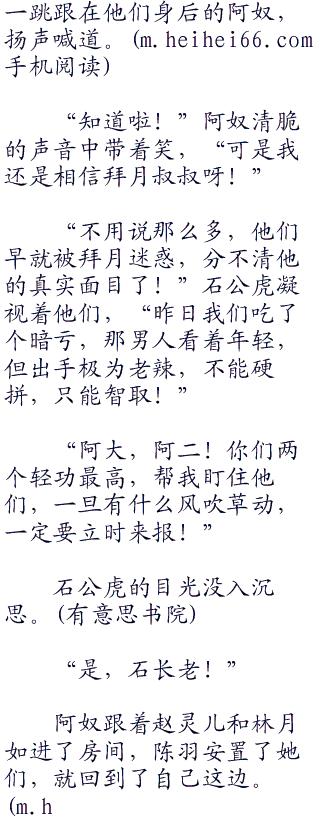 “阿奴!你相信我,离拜月教主远一点,他没有那么简单」!”唐玉小宝挫败的看着他们的背影,还是忍不住冲那一蹦