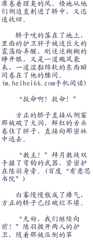 “梁老爷,只要会穿过这密林,咱们只要能少走十天的路,你就能尽早见到你的见到你的娇妻。”陈羽嘴角带着一抹莫名的笑,但那轿中的胖子,早就吓昏了什么都听不到。