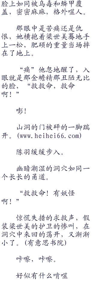 “这可不是听闻,我们这附近的上山的人可是都见过的!那女妖怪,长得特别丑,还会吃人!”