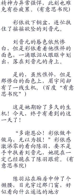 彩依立马端着铜盆,接住了那滴落的黑血,时刻密切关注着刘晋元的面色。