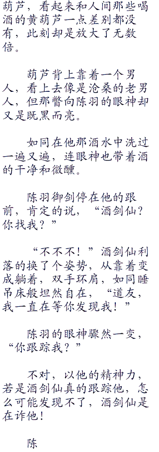赵灵儿这才心安,“你走的这些天,我总是做一个小时候的梦,梦里有个大哥哥,带着姥姥和我骑着一个很大的葫芦,从远方飞来落在仙灵岛上。”