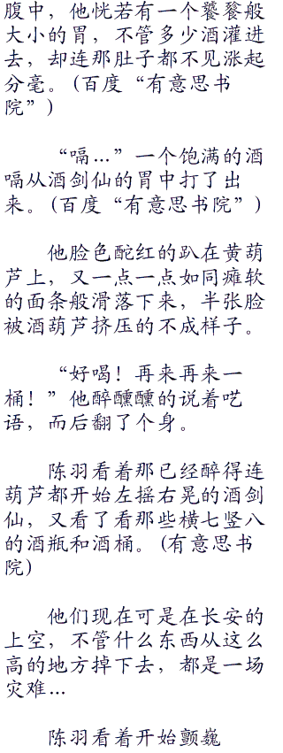 果不其然,酒剑仙闭上眼,仿佛品尝着后味般砸吧砸吧嘴,然后略有遗憾的说着。