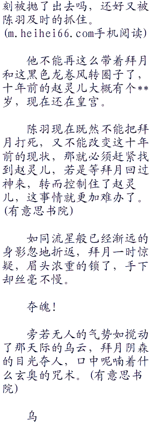 “系统,杀了十年前的拜月,会有什么后果?”陈羽神色微冷,在心里自顾问道。