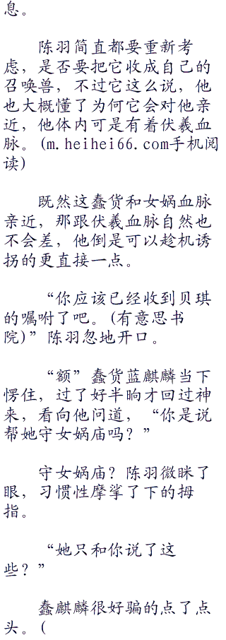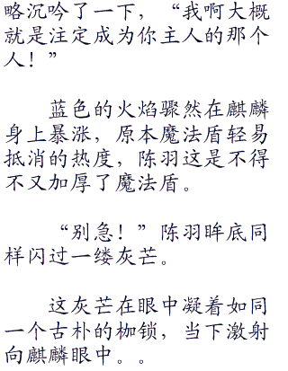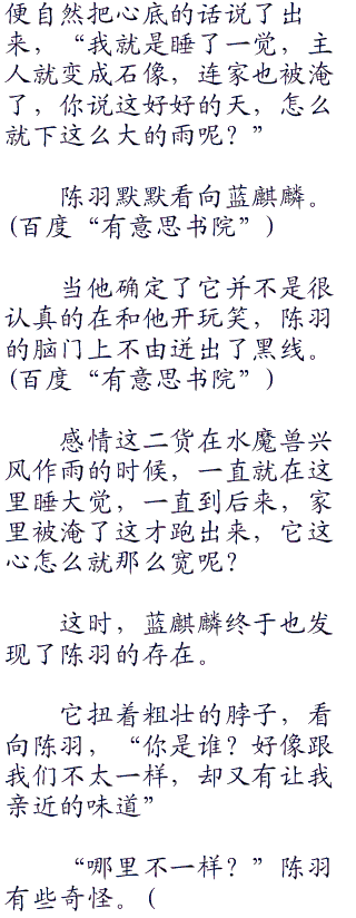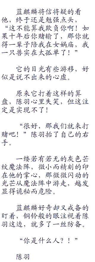 看起来体形比陈羽十年后见它时要略小的蓝麒麟,听了陈羽的问题,