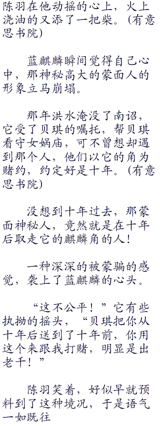 十年的时间对陈羽来说,不过是昨天和今天,但是对蓝麒麟来说,这十年却是一天天度过的。