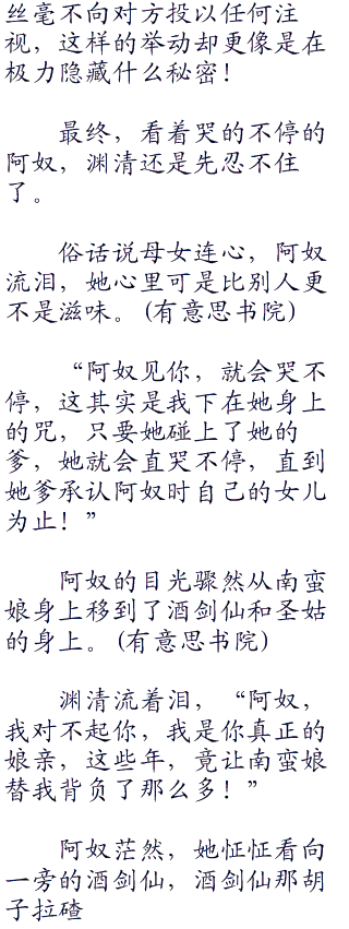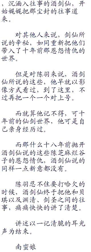 酒剑仙又向渊清逼问,“告诉我!阿奴是不是我的女儿!”