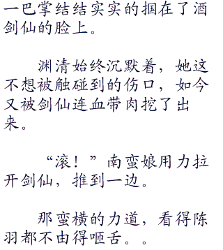 南蛮娘如同母鸡护小鸡一样,当下把脸色苍白却被咄咄逼问的渊清,挡在自己的身后,冲着酒剑仙又是一通怒骂。