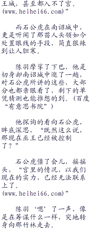 陈羽加快了速度,没等阿奴再吐第二次,他们已经来到了竹林外围。