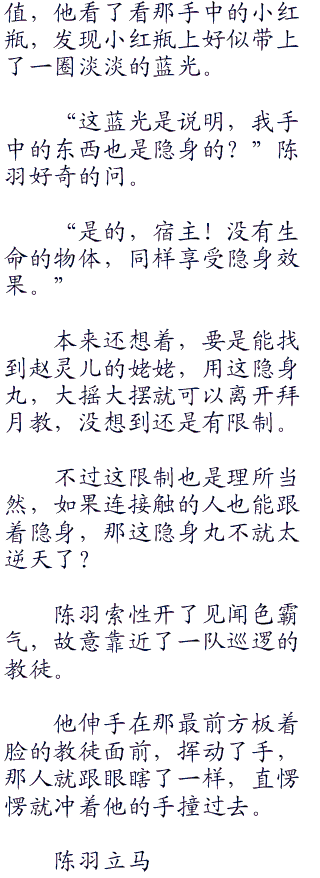 拜月教的祭坛,夜晚同时灯火通明,无数的火把照亮了拜月神教的上空,而又三五不时,就有组成小队的拜月教徒们巡逻而过。