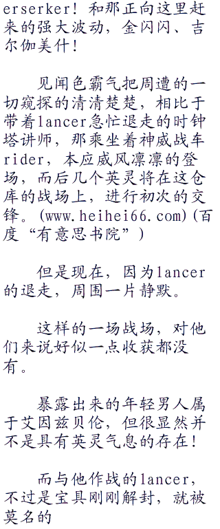 一股巨大的危险忽地袭上了lancer的心头,在他身后,好似有什么巨大的危险,如同黑影般渐渐将他覆盖,那种紧绷的危险感,让他抑制不住心中那种迫切想要逃离的念头。