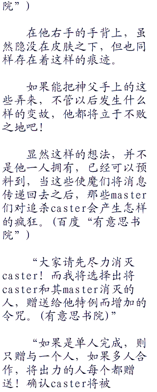 “作为监督者,当有什么需要跟master通报的重大决定时,教会就放出那样的烟火,向身在各处的master通报消息!”爱丽丝菲尔同样略有些紧张的说道。