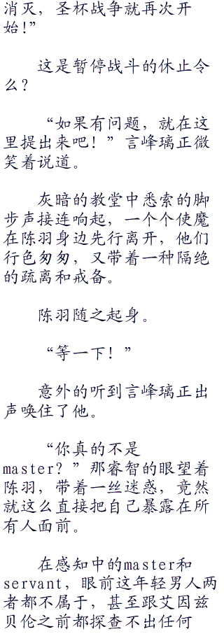 并不太宽阔的冬木教会,教会的信徒席上一片阴沉的气息里,陈羽的存在格外扎眼。