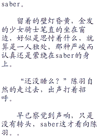 陈羽摊手,虽然不知道卫宫切嗣要作什么,却同样是无所畏惧。