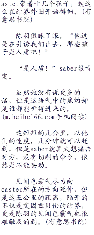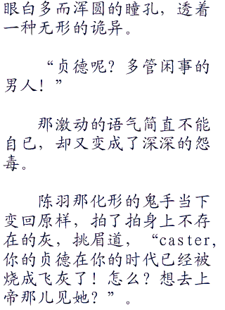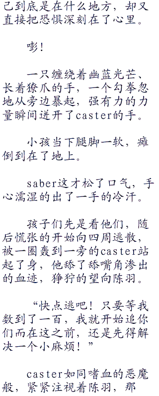 saber的脸上当时露出一种厌恶,好似想到了那疯狂而偏执的男人,当下也是紧皱了眉头。