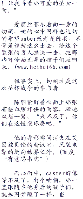 爱丽丝菲儿的语气有些遗憾,如果caster再前进一步,她都可以直接协助他们,对战caster,但可惜的是,这样的计划好像被看透了,c